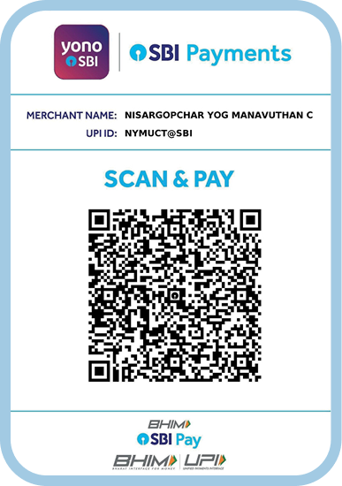 By cash or DD /Online payable /drawn in favour of Nisargopchar Yog Manavutthan charitable trust